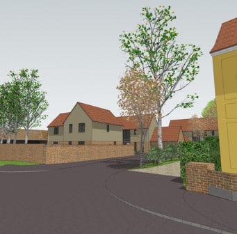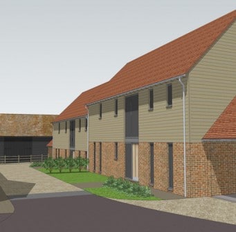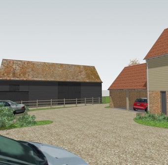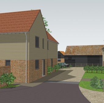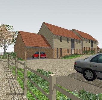 A challenging site in the centre of a pretty village; the existing site was still being used for agricultural purposes and had 3 dutch barns in the centre of the site. There was an access track that needed to be maintained to access working fields to the rear along with being surrounded by a number of Listed buildings.