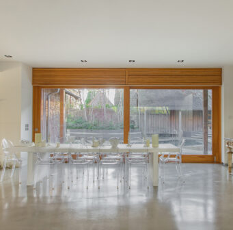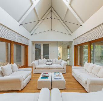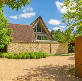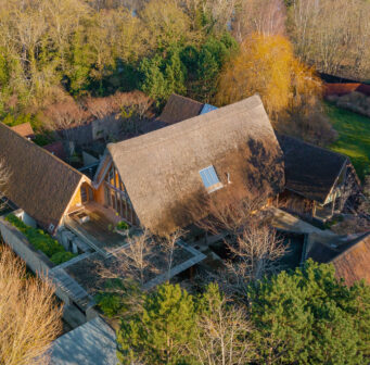 Externally the principal building elements are clad with traditional natural materials; reed thatch roofing for the main ‘barn’ element and the smaller ‘outbuildings’ have vertical timber boarded walls under clay plain tiles. All the time providing a reference back to the immediate context of the village and surrounding farmland.