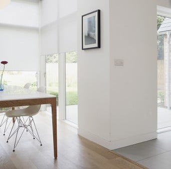 The flow of the space in and around the house has been particularly successful; on arrival at the property a skilfully landscaped parking court draws your eye to the front door. The canopy over the entrance door is deliberately low to heighten the impression of space once you enter the hallway. Immediately your eyes are drawn into the house and the logic of the space is revealed, the staircase leading upstairs, dining to your left and then the promise of more space by the views glimpsed into the private gardens at the rear. Once into the house proper the living area extends both ways and the generosity of space and light are very evident without losing the sense of place or home.
