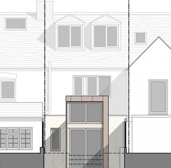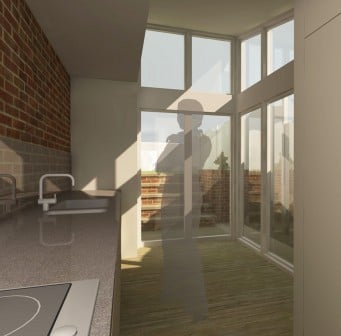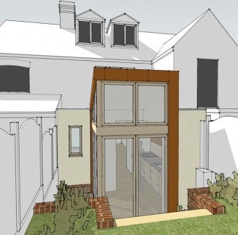 The house already has a rear small extension, but it has been planned quite badly. The view from the kitchen window is of the neighbour’s extension and the access to the rear garden is rather tortured – out through the side, up steps etc.