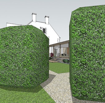 Delving into the history of the Manor, we came across the original design drawings for the landscape works to the grounds of the manor. The passage of time has masked the original formality of the layout, but the structure of the scheme was just about visible on the ground. The area where our clients were looking to extend was the rose garden; whilst the rill and Yew hedging remained intact the pathways and planting beds had been lost.
