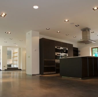 Throughout the ground floor large areas of full height glazing, that slide and fold, give immediate access to the rich and mature landscaping at the same time allowing light to play across all surfaces.