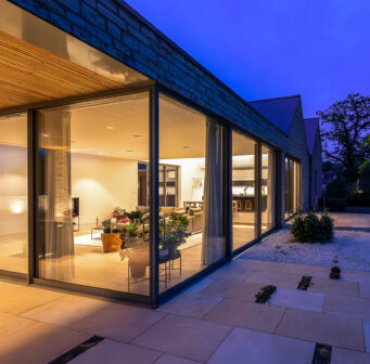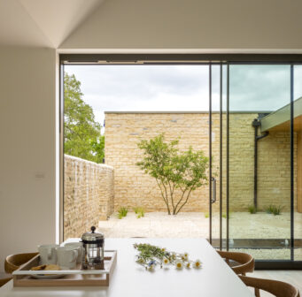 Much of the village is characterised by the remnants of late medieval burgess plots. Simple slate pitched roofs and long stone outbuildings are evident, forming a strong vernacular presence. Inspiration was drawn from the historic layouts, forms, and materials, particularly the Cotswold stone walls that bound and divide the site.